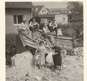 Nach Bombardierung der Stadt Essen in den letzten Kriegsjahren baute die Fa. Krupp auf dem Acker des Bauern Kauke Behelfsheime für ausgebombte Angestellte.